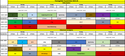 Treningstider oppdateres normalt i august for høsten, i november for lag med innendørs trening og over nyttår for vårsesongen ute.